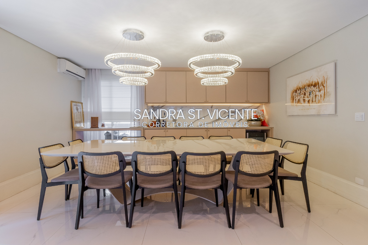 Encante-se com este belíssimo apartamento de 198m², totalmente reformado com acabamentos de alto padrão. Living espaçoso para três ambientes integrado a uma agradável sacada, três suítes amplas, todas com excelente iluminação natural, além de um belo escritório equipado com sofá-cama ideal para quem busca um espaço funcional e versátil.
