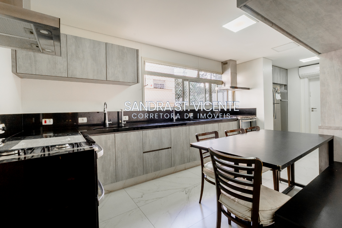 A cozinha é moderna e prática, com ar-condicionado em todos os ambientes, inclusive na própria cozinha um diferencial raro e sofisticado. 2 vagas de garagem.